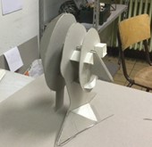 Bien que Naum Gabo utilise des plans courbés, j’opte pour des plans plats après plusieurs essais.