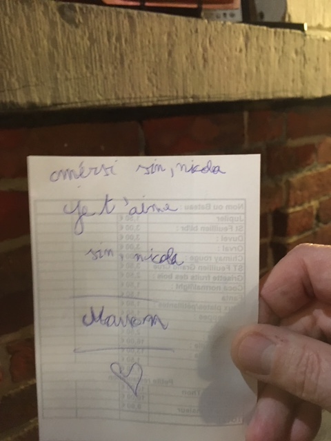 Sur cette photo, vous verrez le mot qu’une de mes petites-filles a donné au ramoneur, le dénommé Père fouettard pour qu’il le remette à Saint Nicolas. Ce petit message est plein de tendresse et de naïveté. Vous ne pouvez que l’aimer.