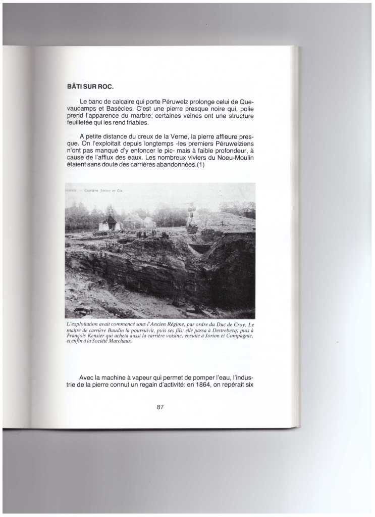 Je connais très bien le propriétaire qui a fait construire sa maison dans le site (Jean-Louis Marlier, le fils de dessine de Martine). Il est décédé il y a quelques années et je n’ai pas de liens avec son épouse (je vais tenter de voir si c’est possible de renouer). J’ai fait beaucoup de recherches avec lui sur l’histoire du site et de la pierre à Péruwelz.